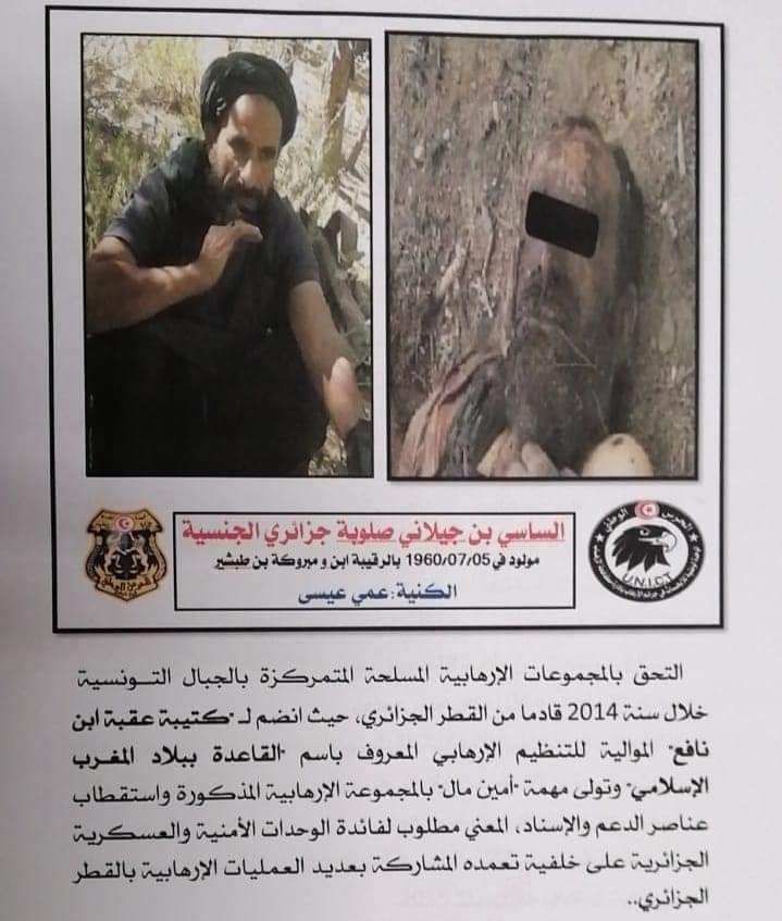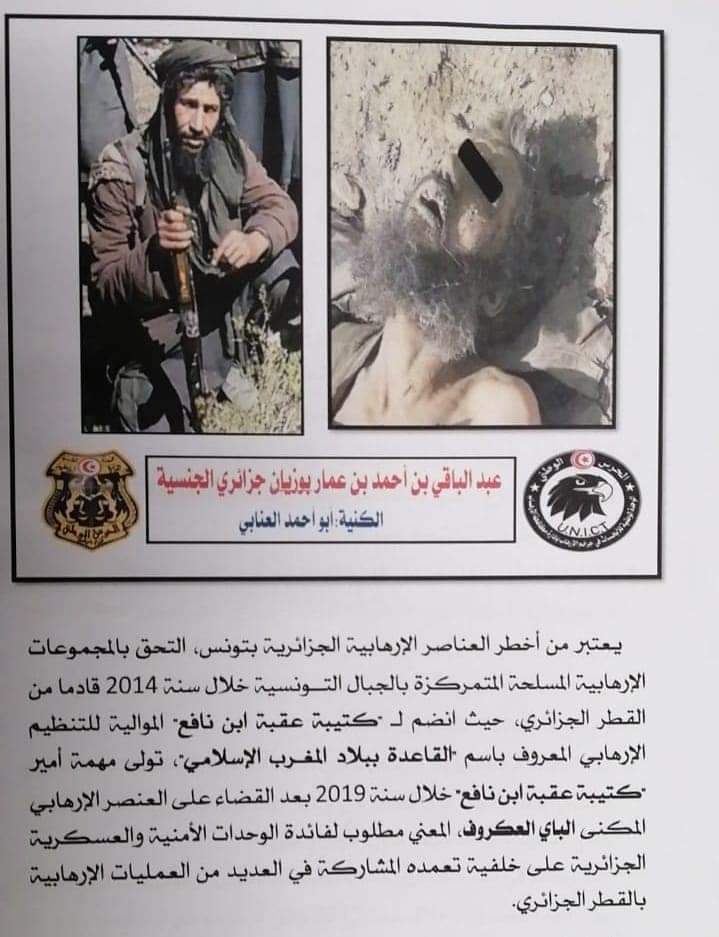 He is considered one of the most dangerous Algerian terrorist elements in Tunisia. He joined the terrorist groups stationed in the Tunisian mountains in 2014, coming from Algeria, where he joined Katibat ‘Uqbah Bin Nafi (KUBN), which is loyal to the terrorist organization known as al-Qaeda in the Islamic Maghrib (AQIM). He took over the position of Amir in 2018, after the elimination of the terrorist element popularly known as Bay al-Akrouf. The person concerned is wanted by the Algerian security and military units, on the grounds of his intention to participate in several terrorist operations in Algeria.