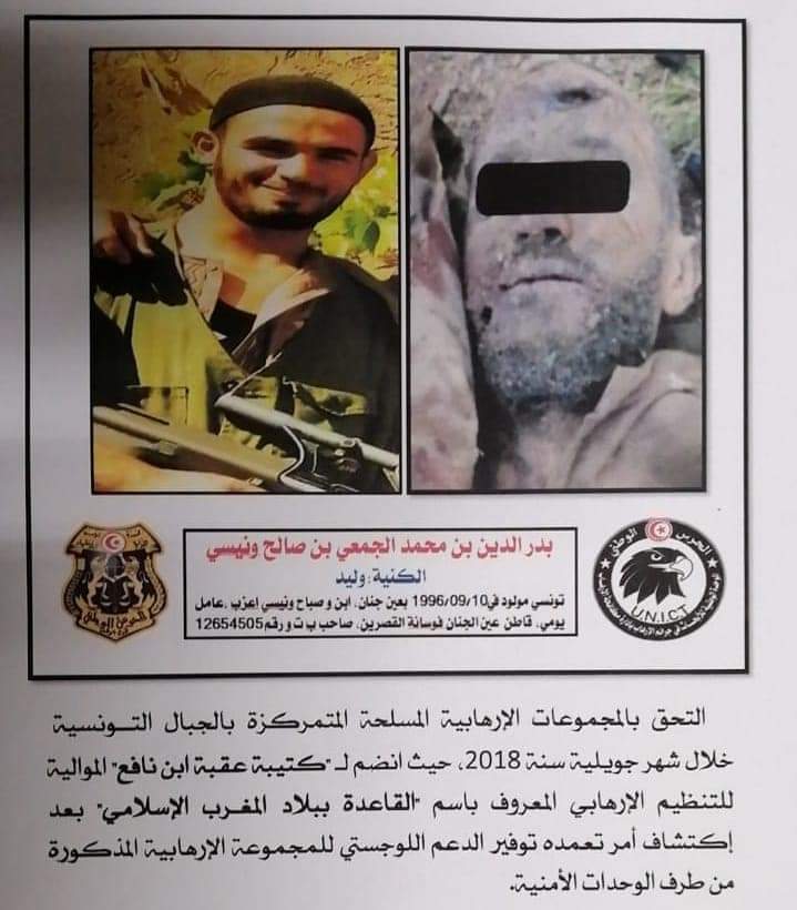 He joined the terrorist groups stationed in the Tunisian mountains in July of 2018, where he joined KUBN, after the discovery of an order in which he provided logistical support to the terrorist group mentioned by the security units.